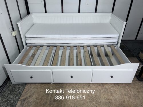 Na sprzedaż oferujemy eleganckie i funkcjonalne łóżko-leżankę z kolekcji IKEA HEMNES w kolorze białym.