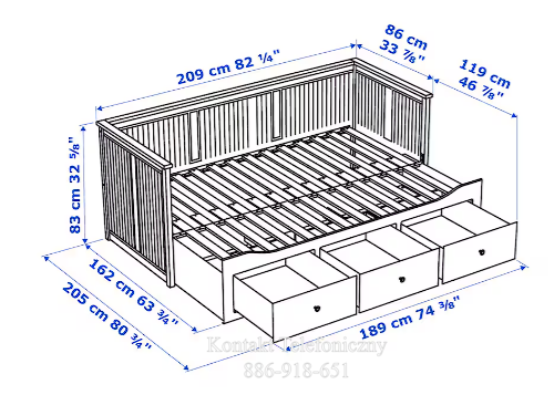 Wymiary łóżka podane są na ostatnim zdjęciu.