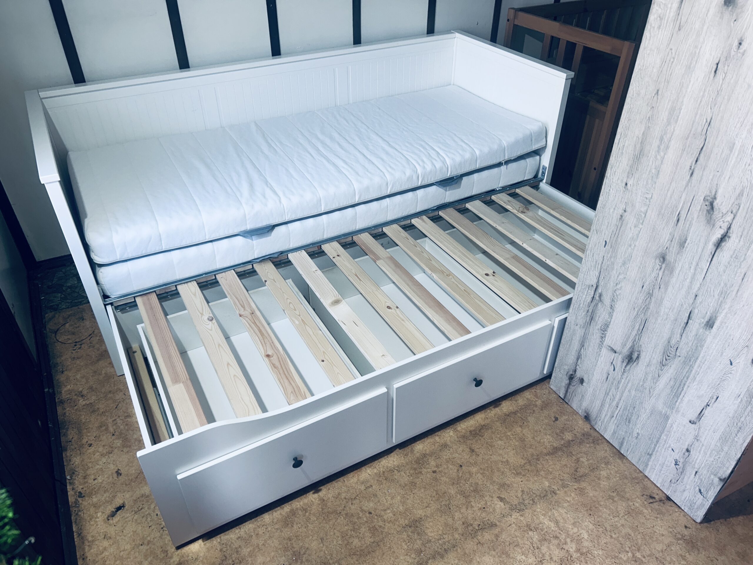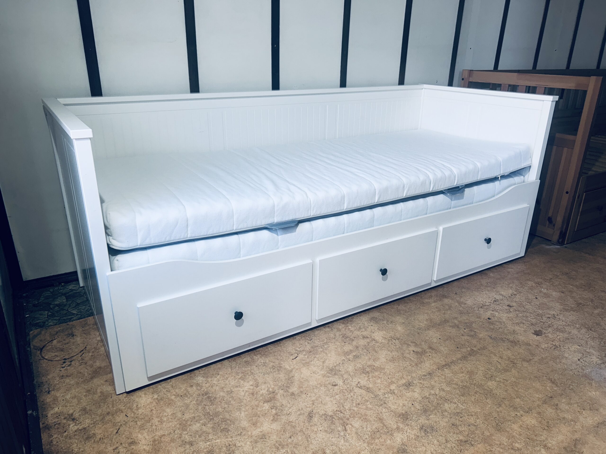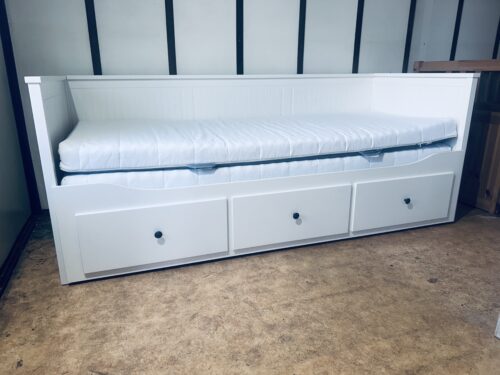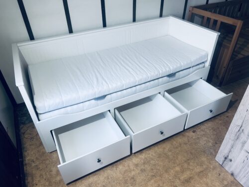 Na sprzedaż oferujemy eleganckie i funkcjonalne łóżko-leżankę z kolekcji IKEA HEMNES w kolorze białym.